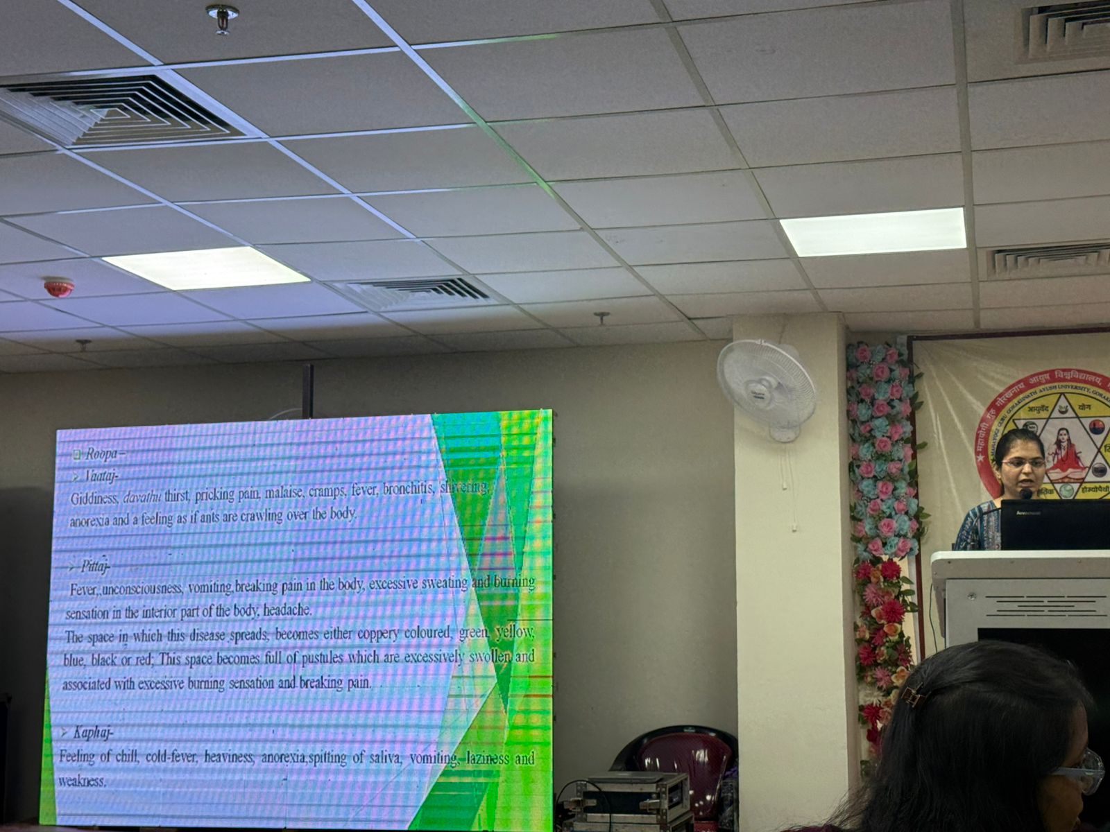 Her paper focused on the role of Srotodushti in disease pathogenesis, highlighting its significance in Ayurvedic understanding of disease development. The presentation elaborated on types of Srotodushti with examples of Swedovaha Srotas in conditions such as Kustha, Jwara, and Sthaulya, along with integration of Shatkriya Kala to emphasize early diagnosis and intervention.