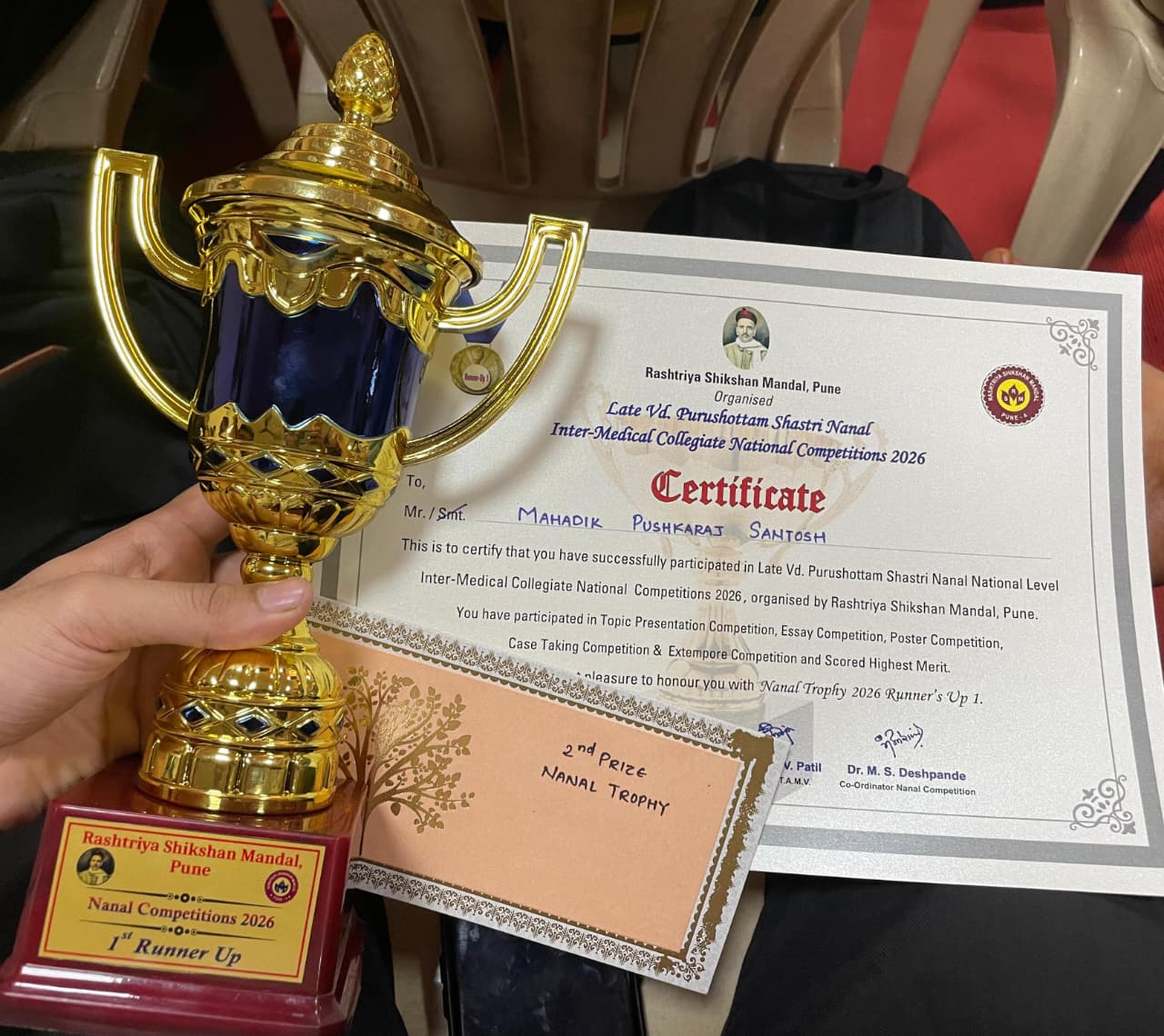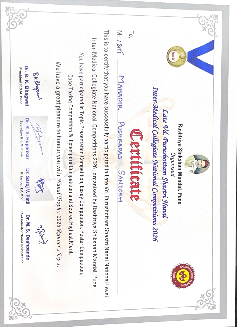 Mr. Pushkaraj Santosh Mahadik Wins 2nd Prize in Nanal Inter-Medical Competition