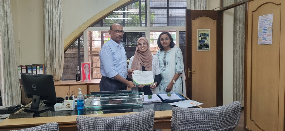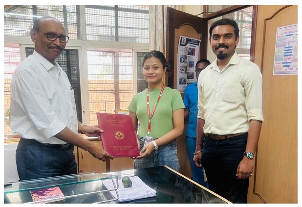 Miss Nabanita Chakraborty student of second professional BAMS was awarded with the SPARK 23 24 scholarship of Rs 50,000 and a certificate for her research work titled Assessment of effect of Sugandhi Dravya on patients of Hypertension having Pitta Pradhan Prakruti’ under the guidance of Dr Advait Murli Menon, Assistant Professor, Department of Roga Nidan evam Vikriti Vigyan