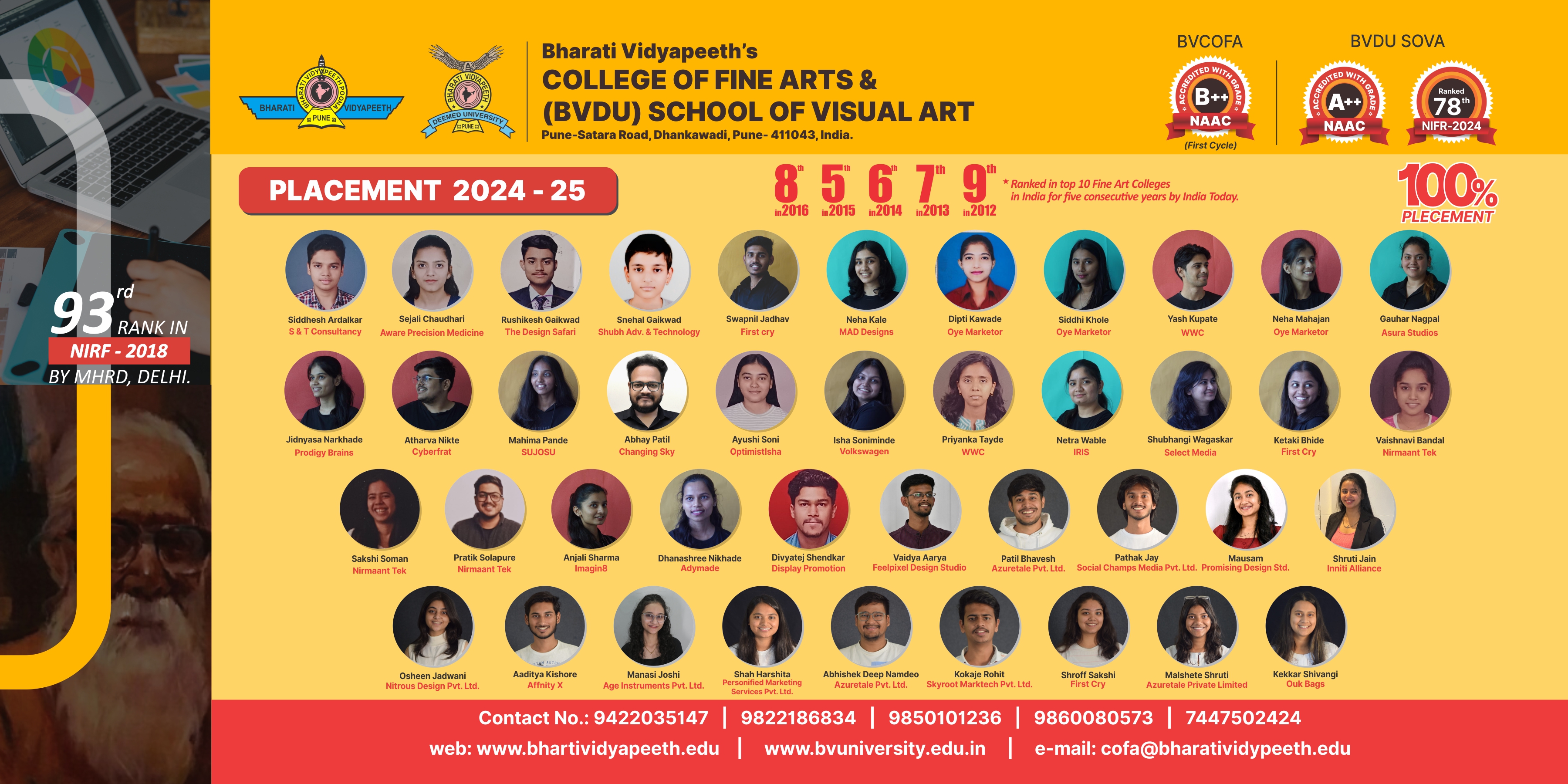 Bharati Vidyapeeth is proud to be the first to introduce degree in FINE ART under University of Pune through the establishment of Bharati Vidyapeeth's College of Fine Arts.