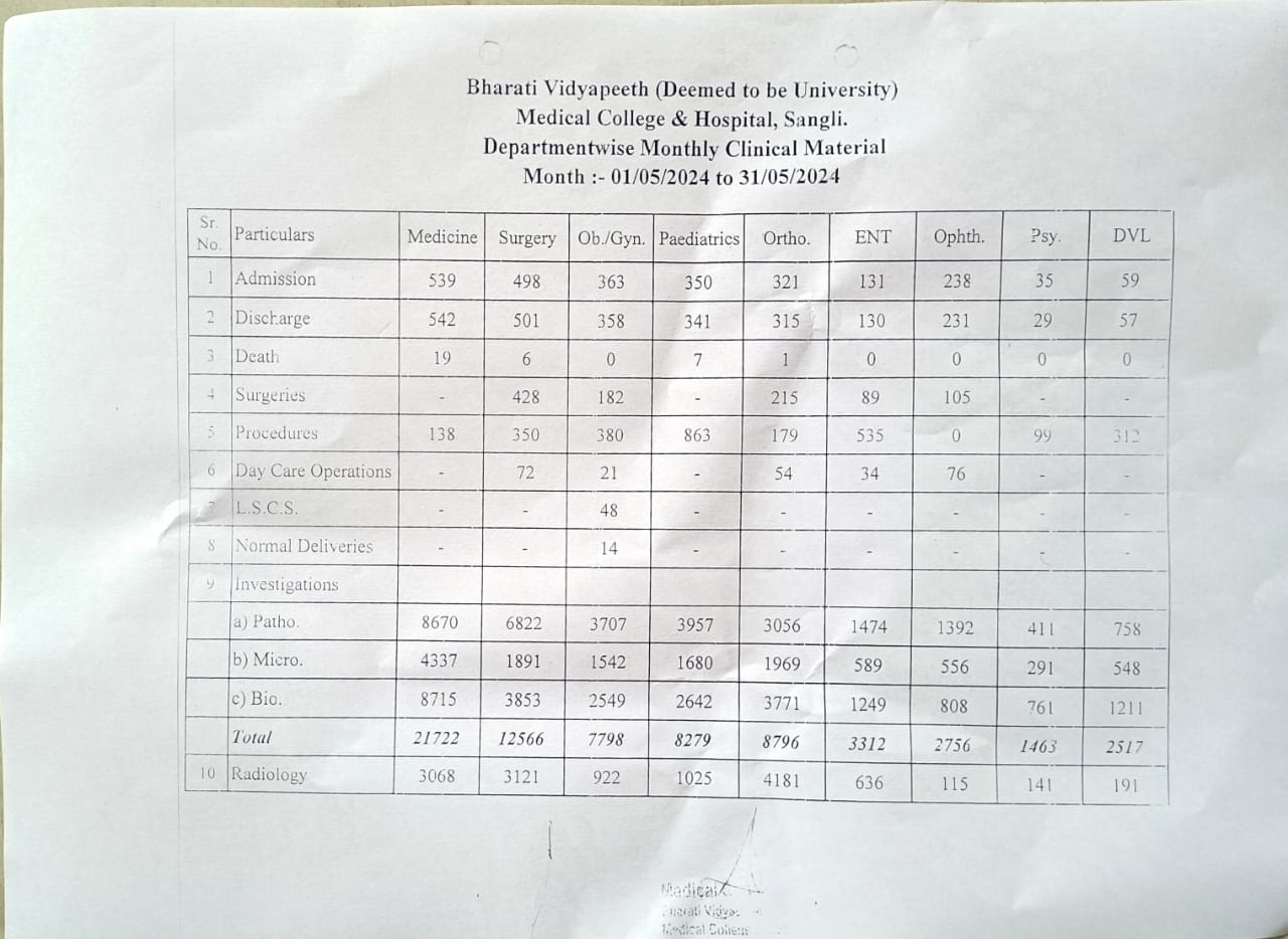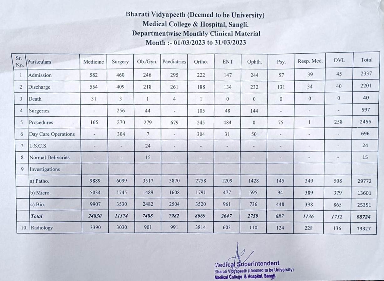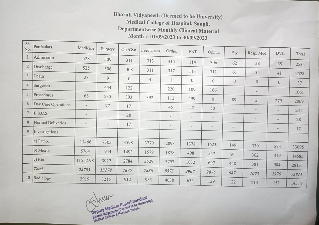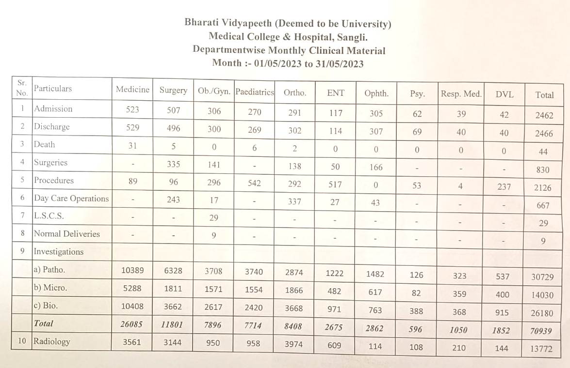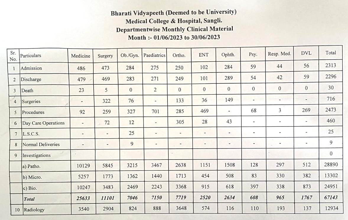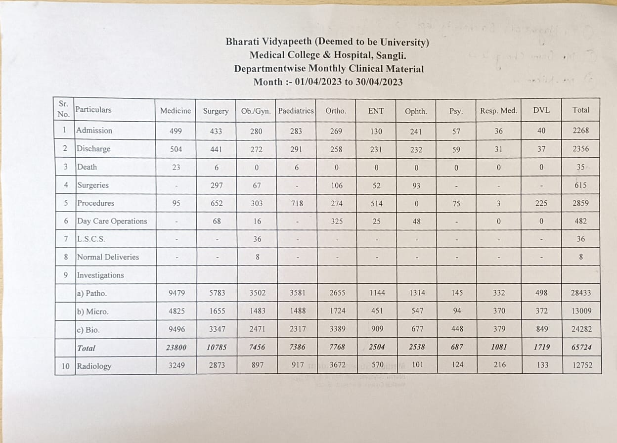 Department-wise Monthly Clinical Material