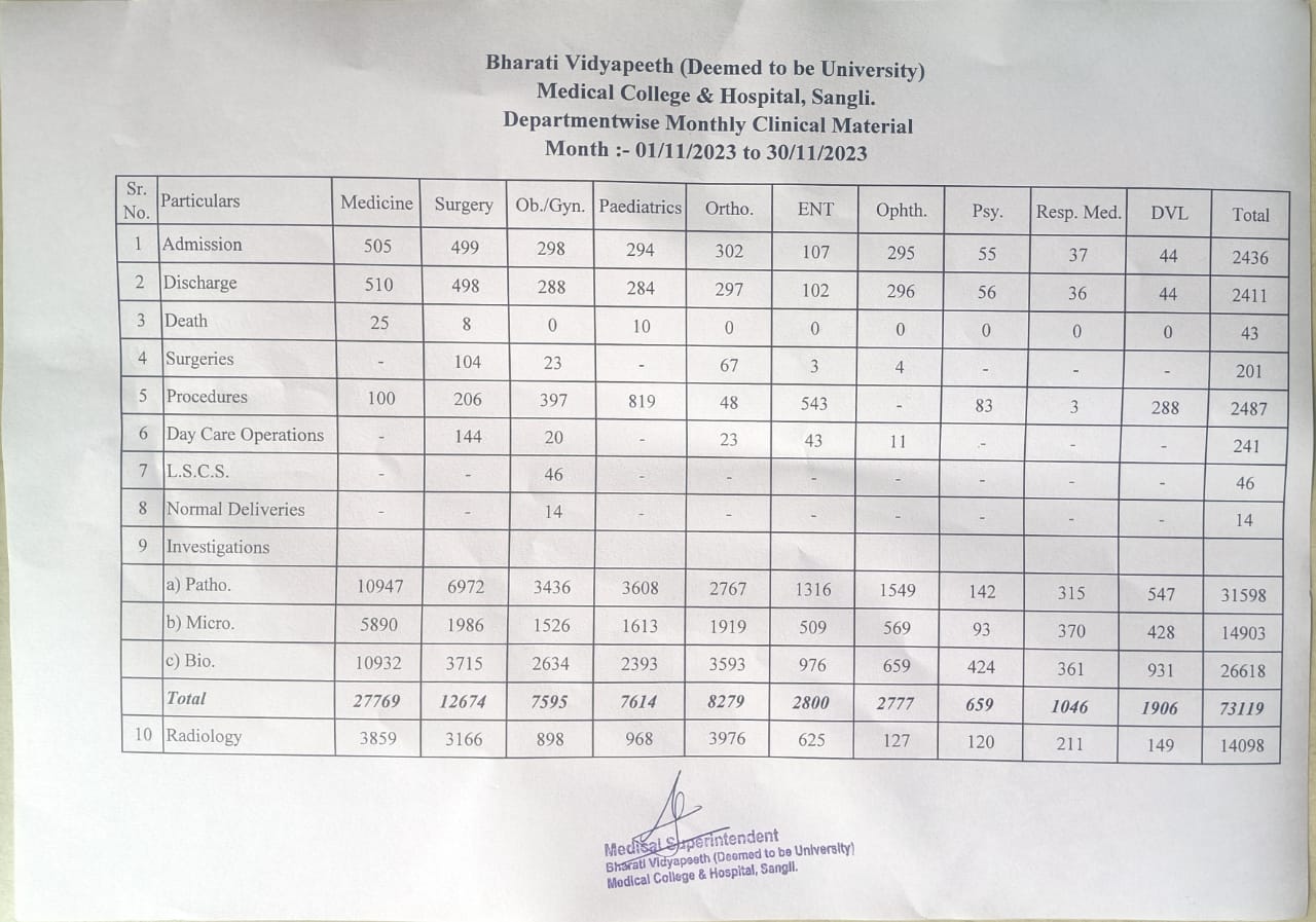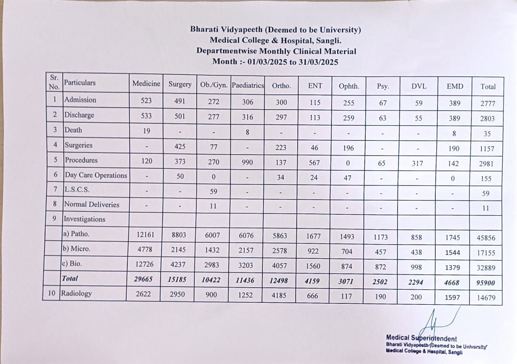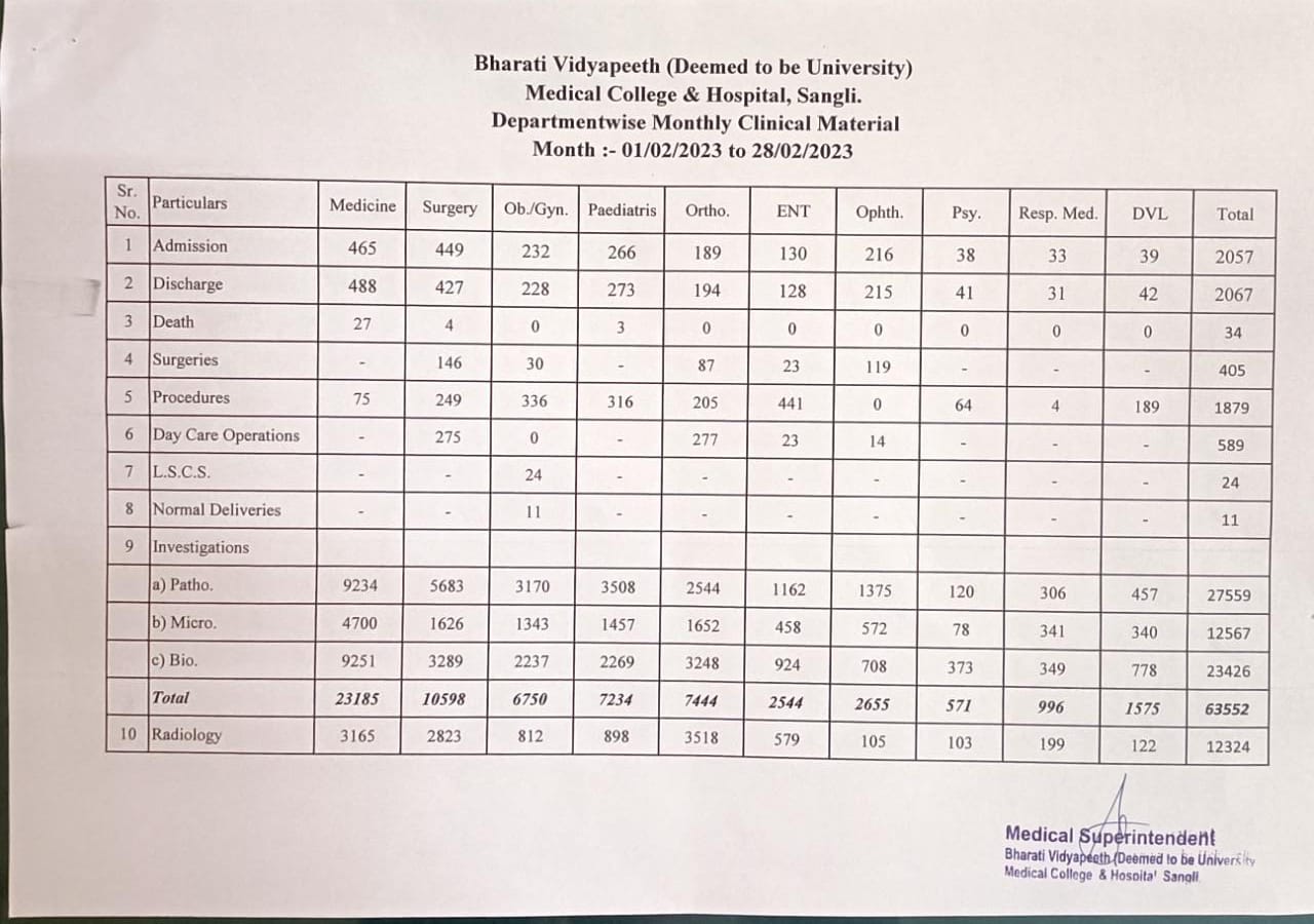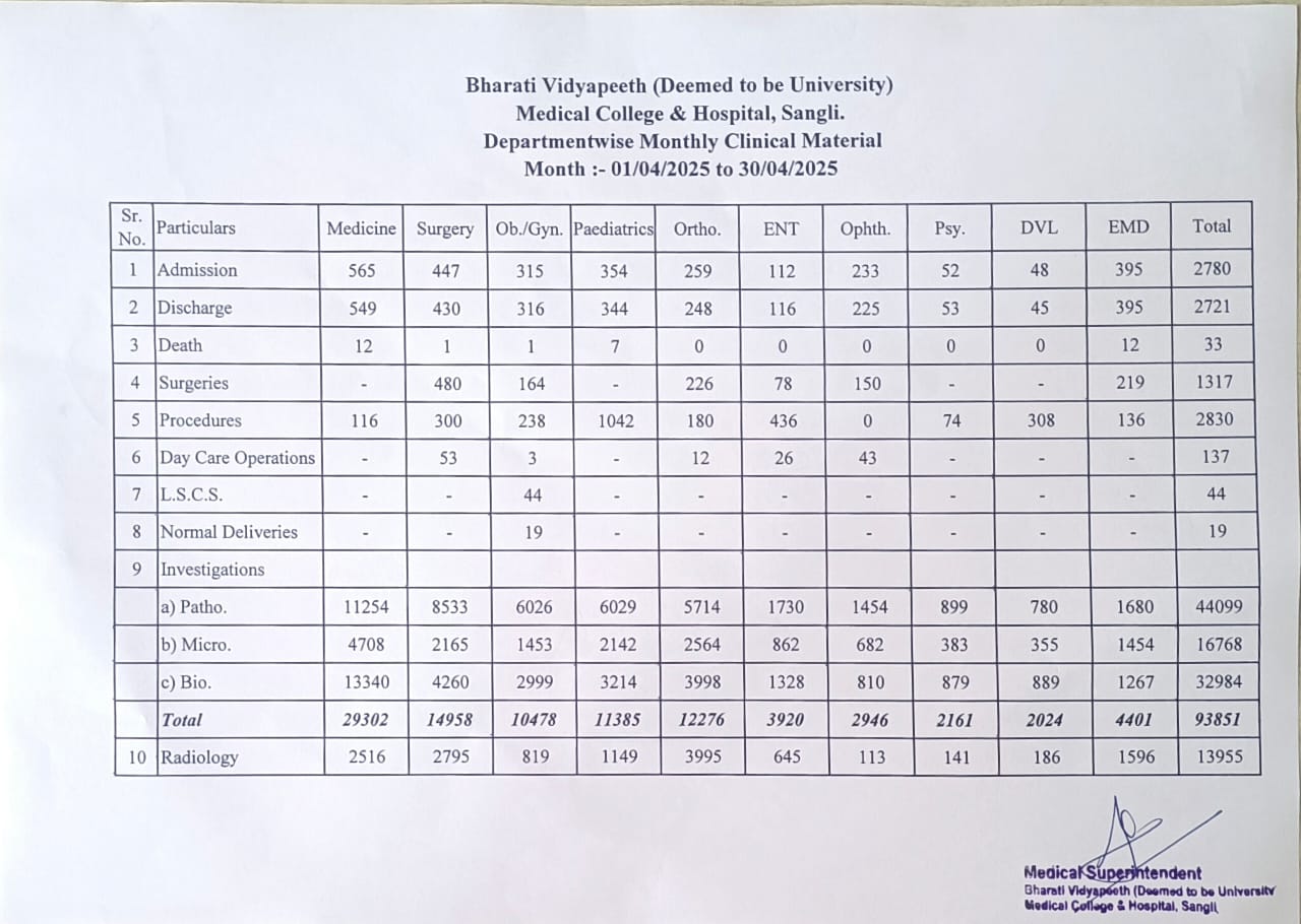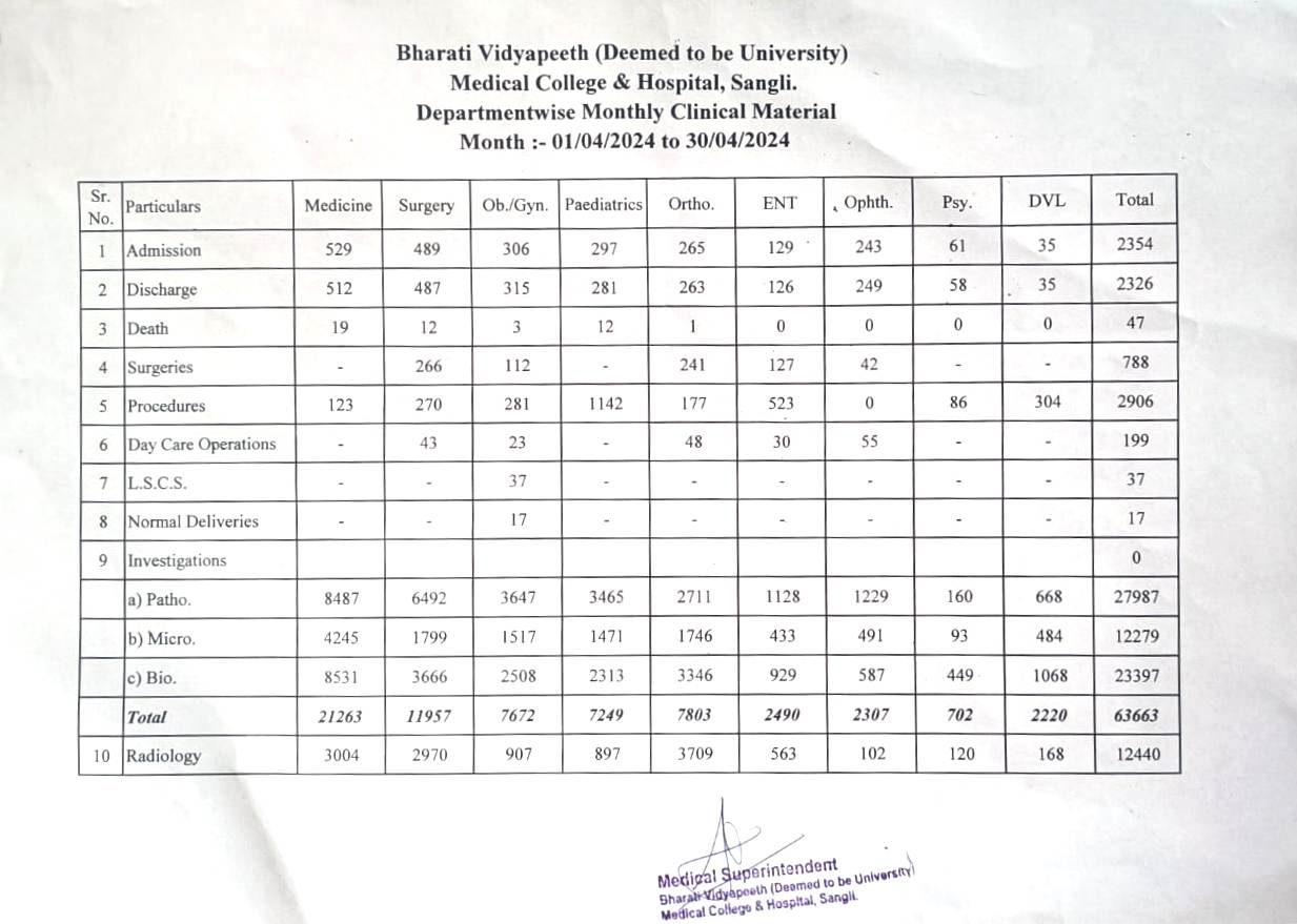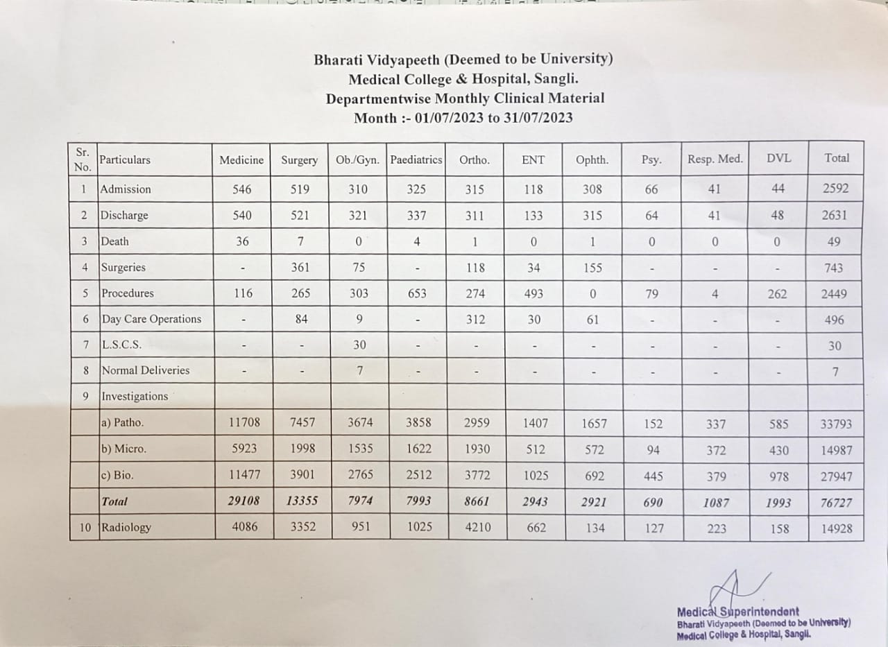 Department-wise Monthly Clinical Material
