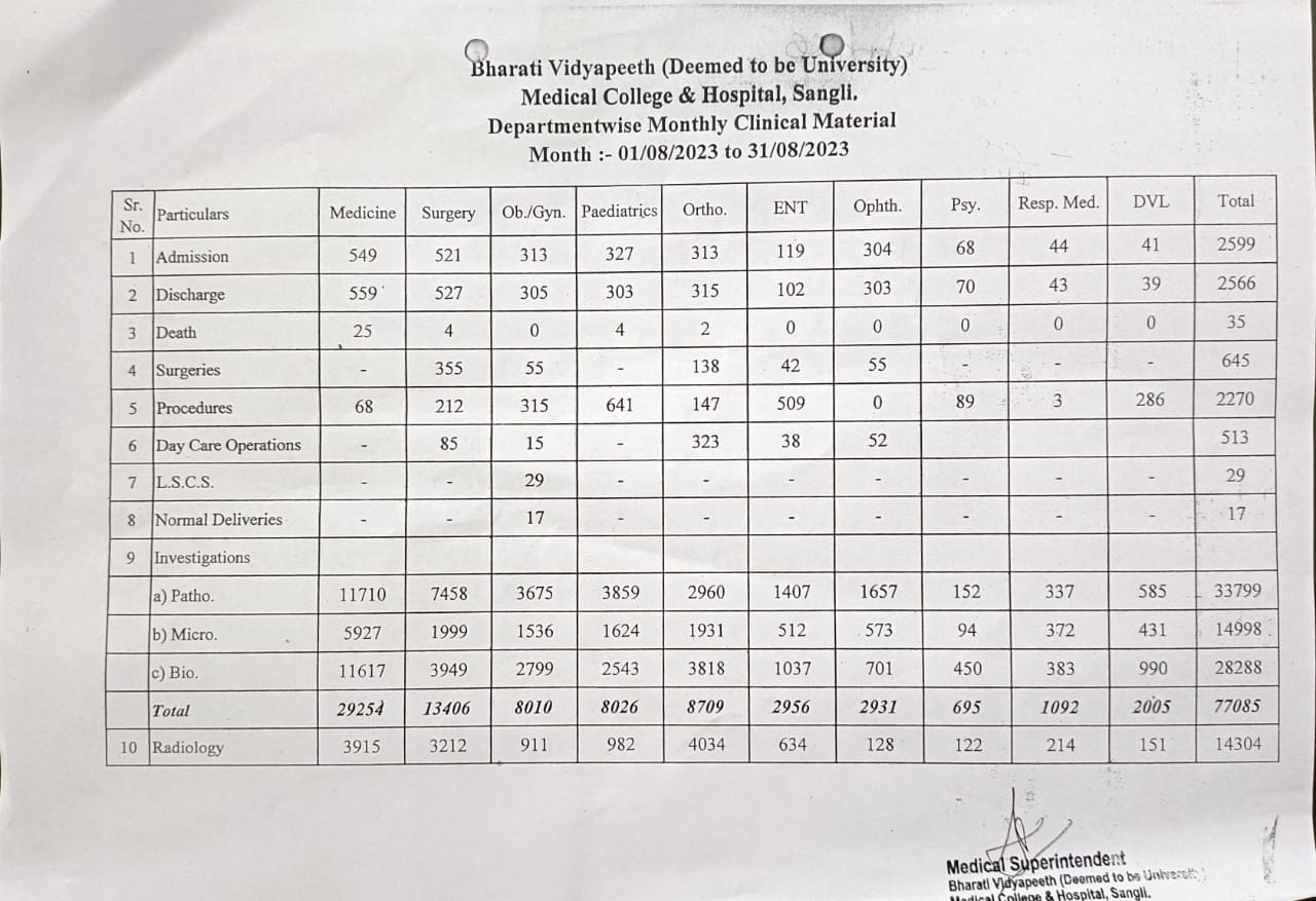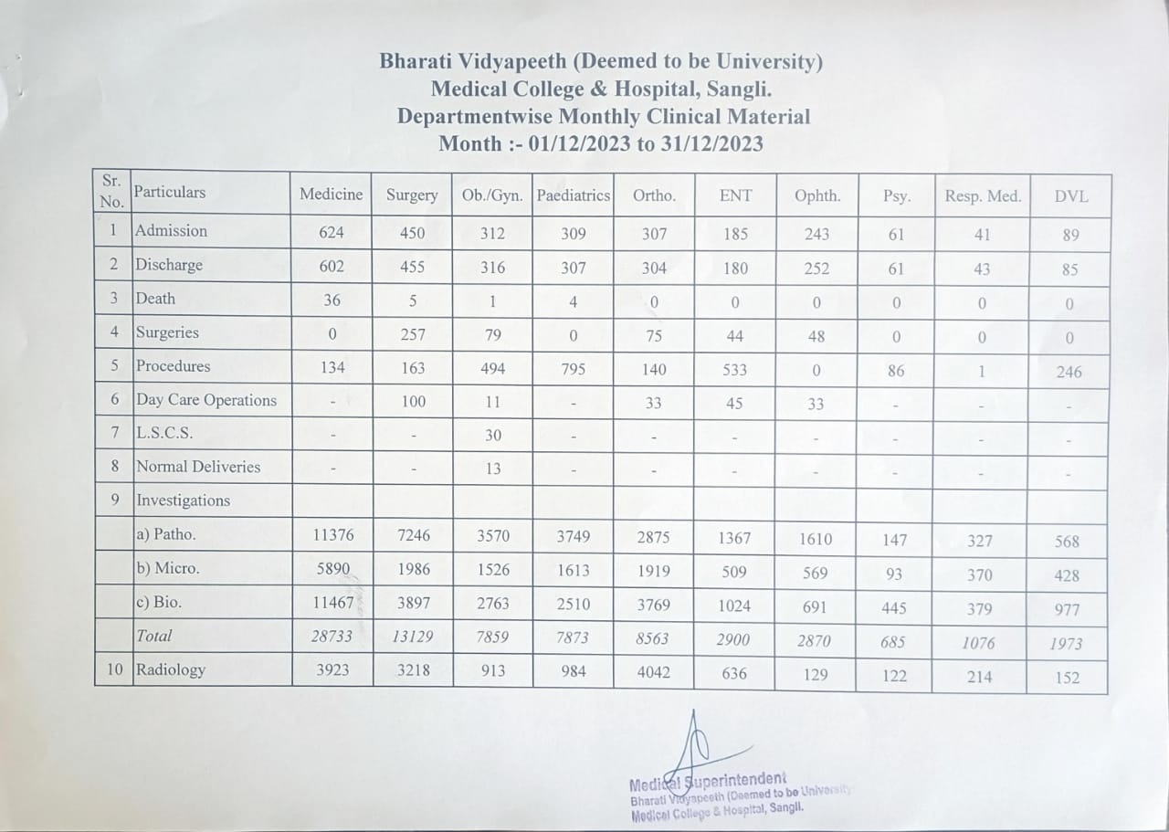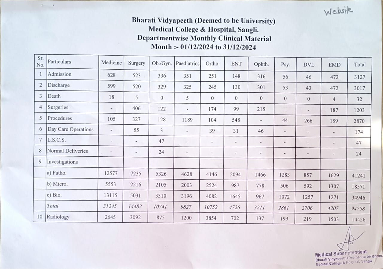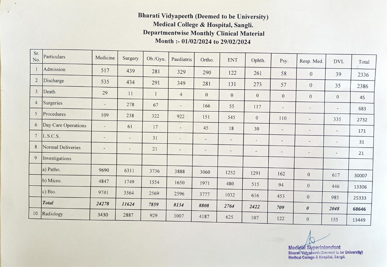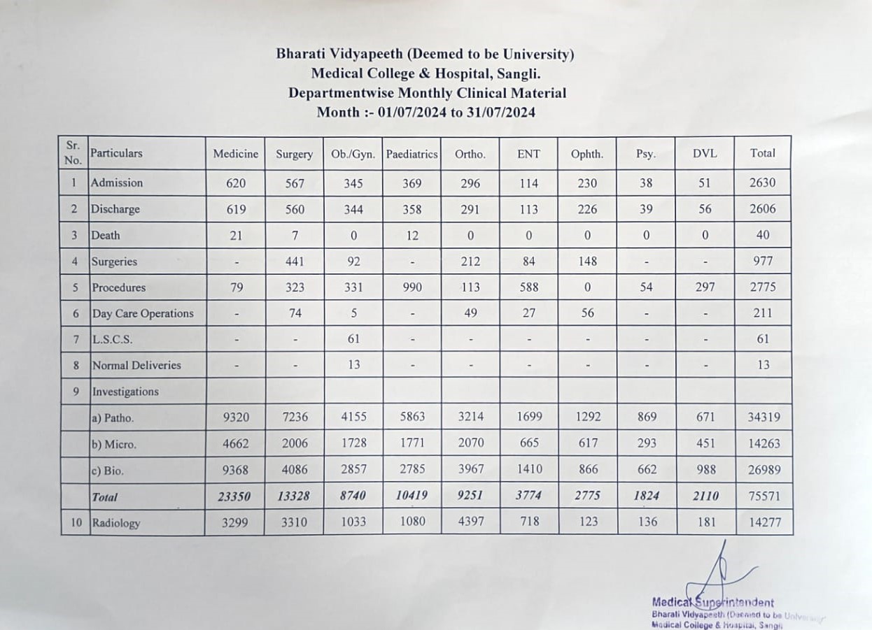 Department-wise Monthly Clinical Material