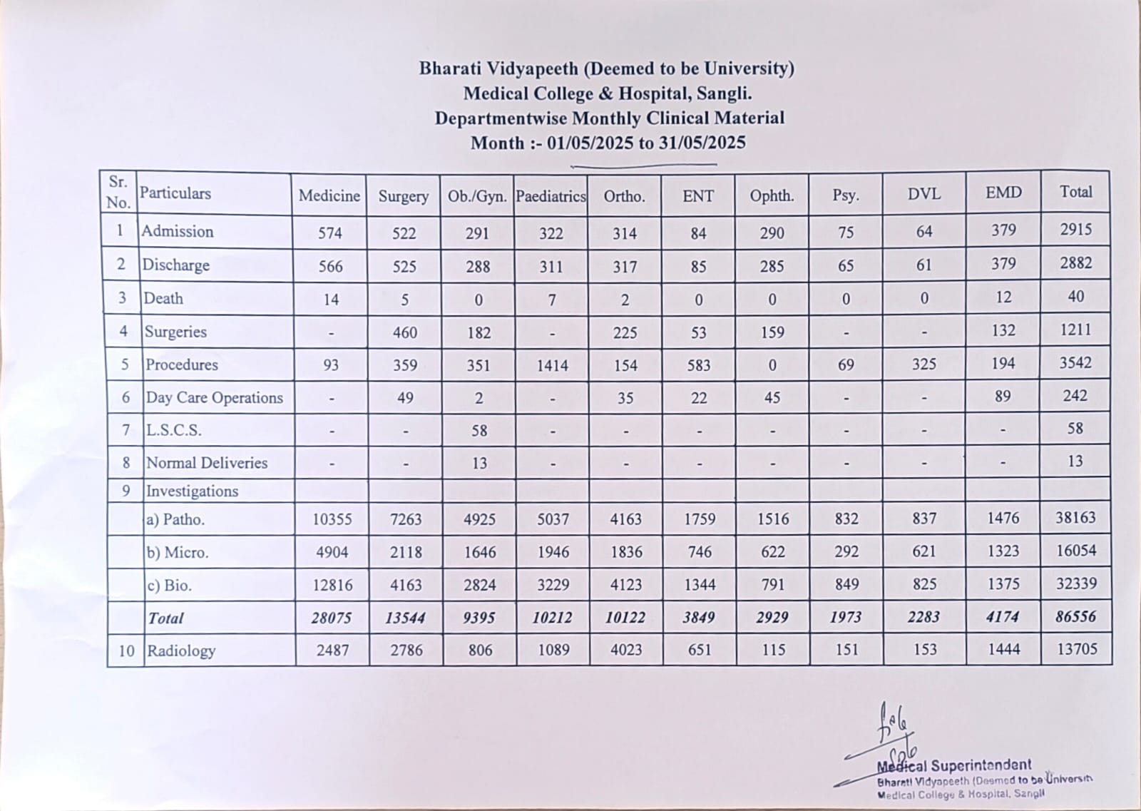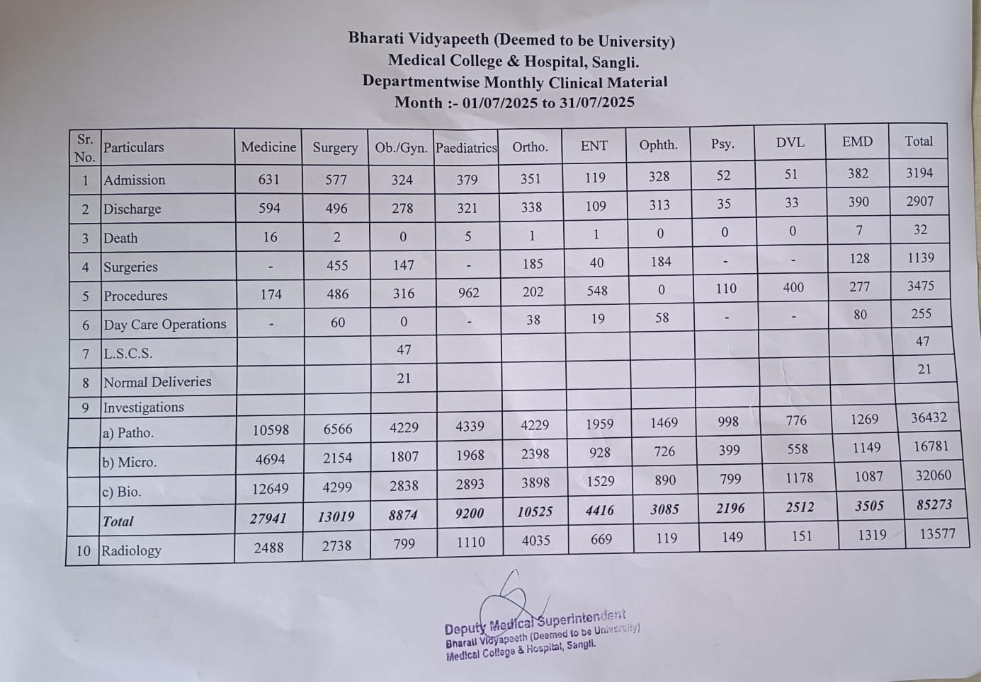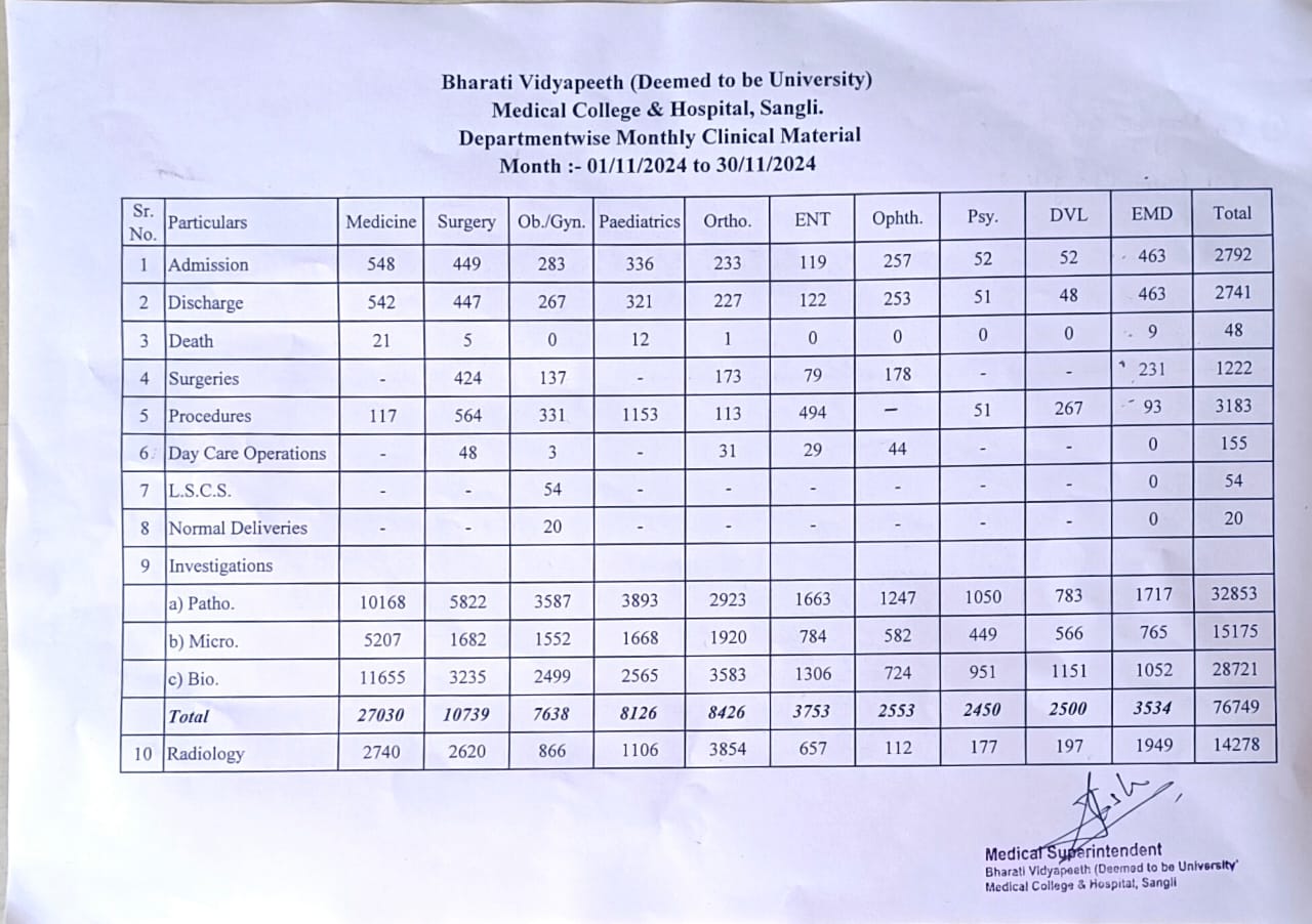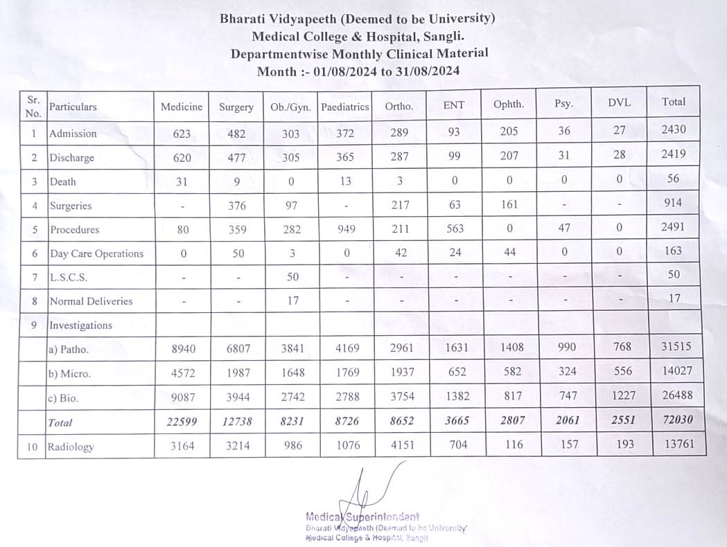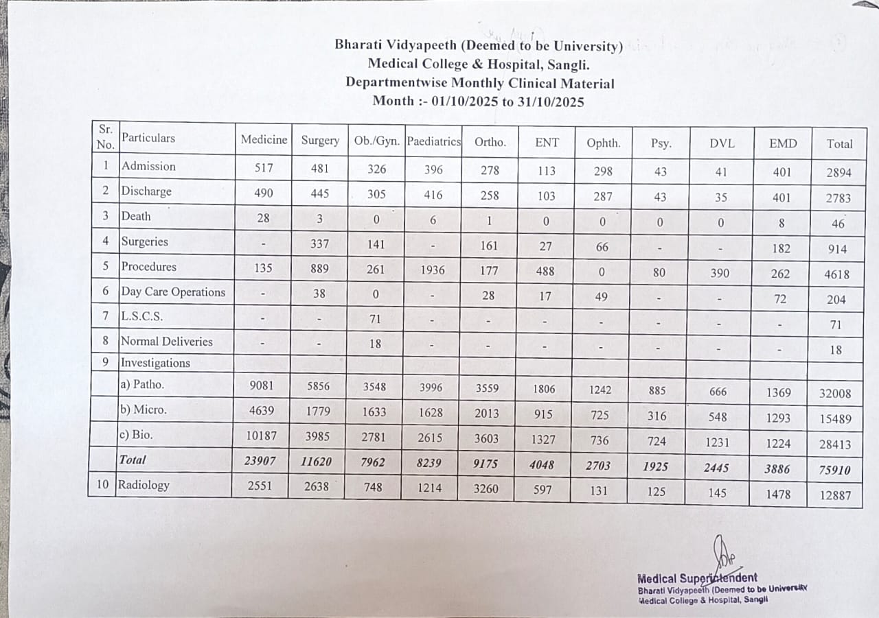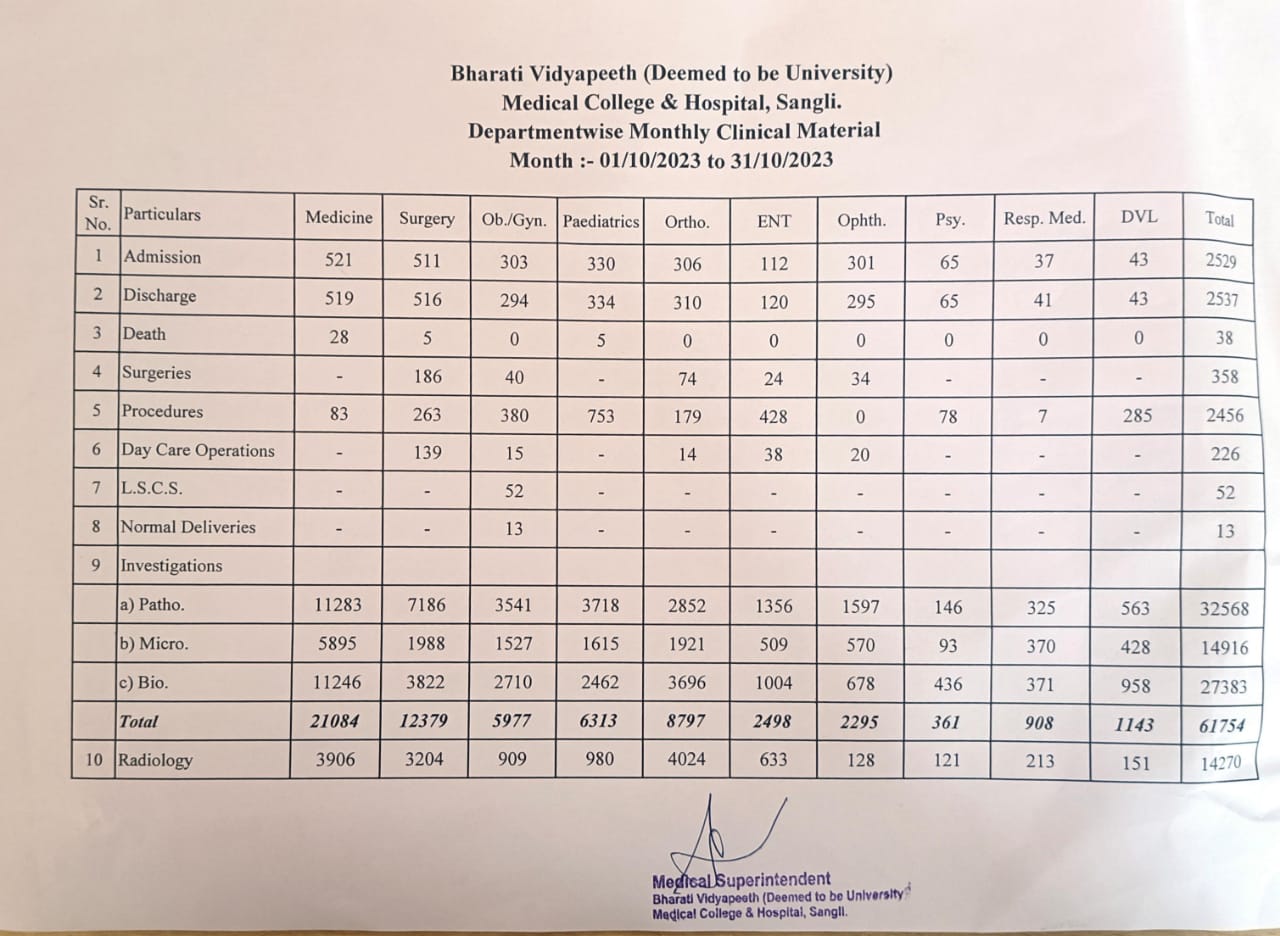 Department-wise Monthly Clinical Material