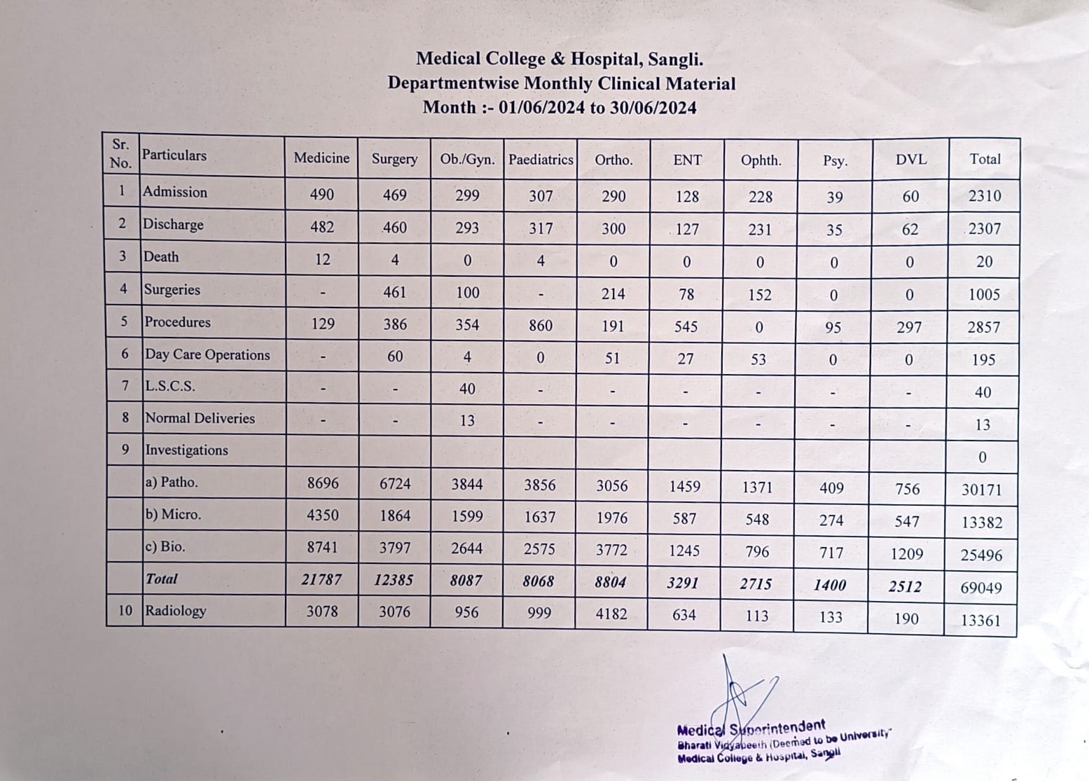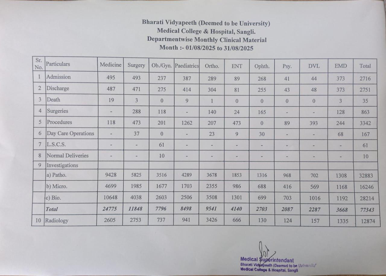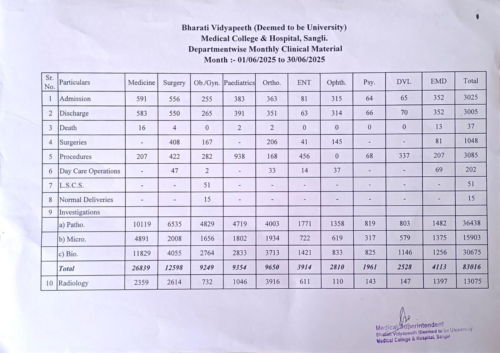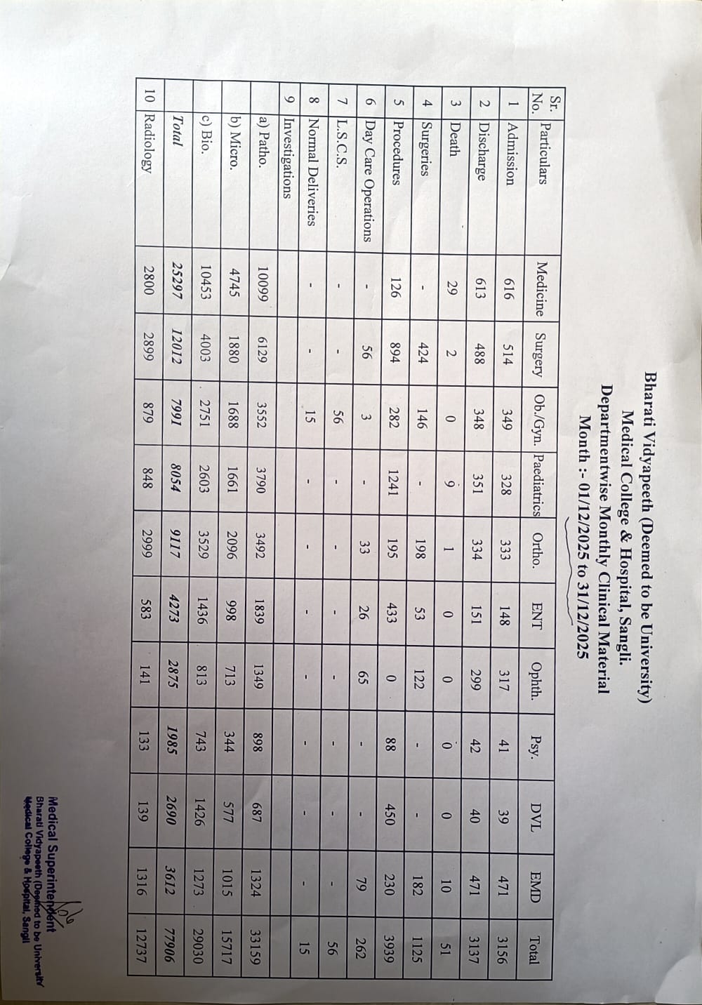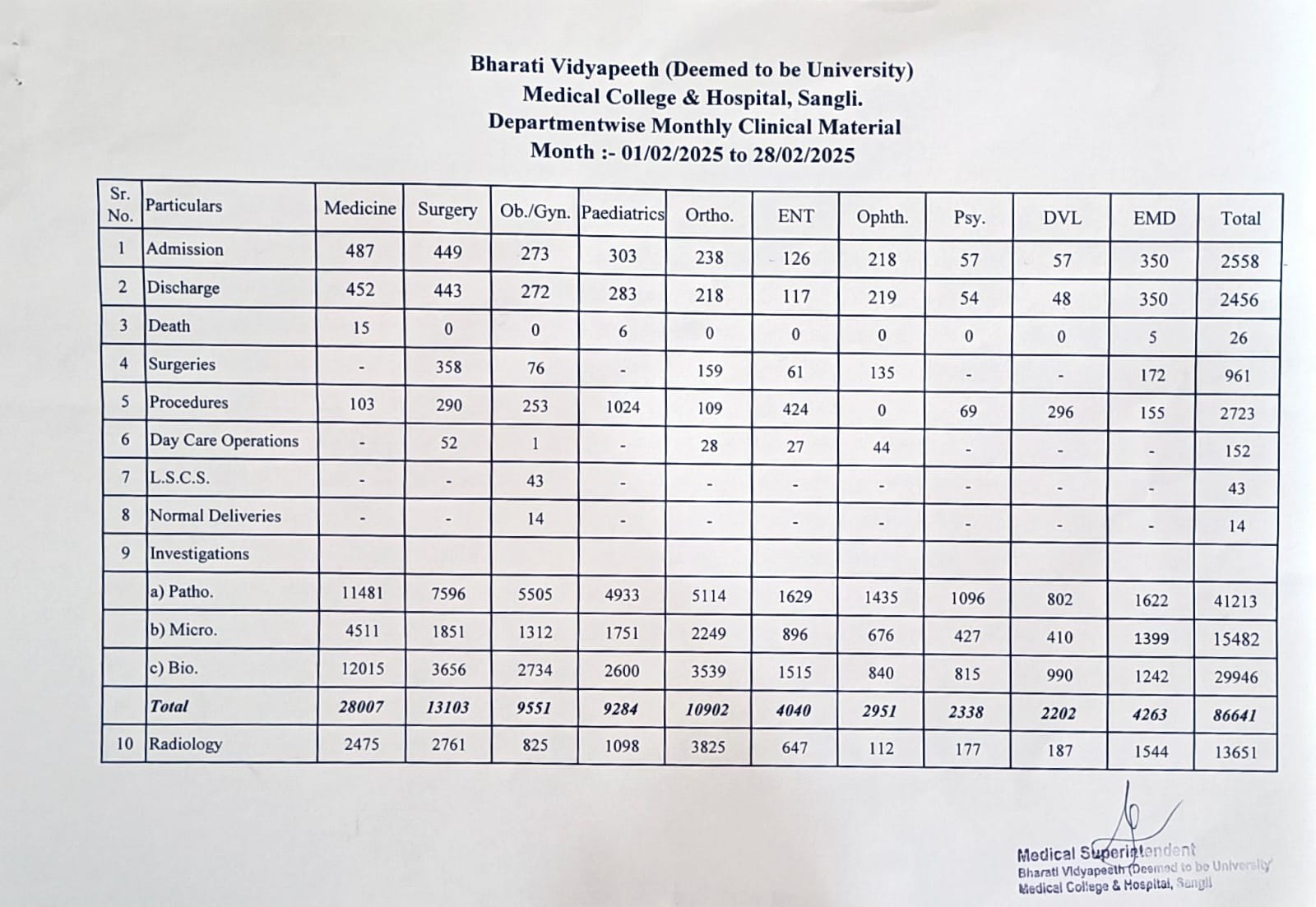 Department-wise Monthly Clinical Material