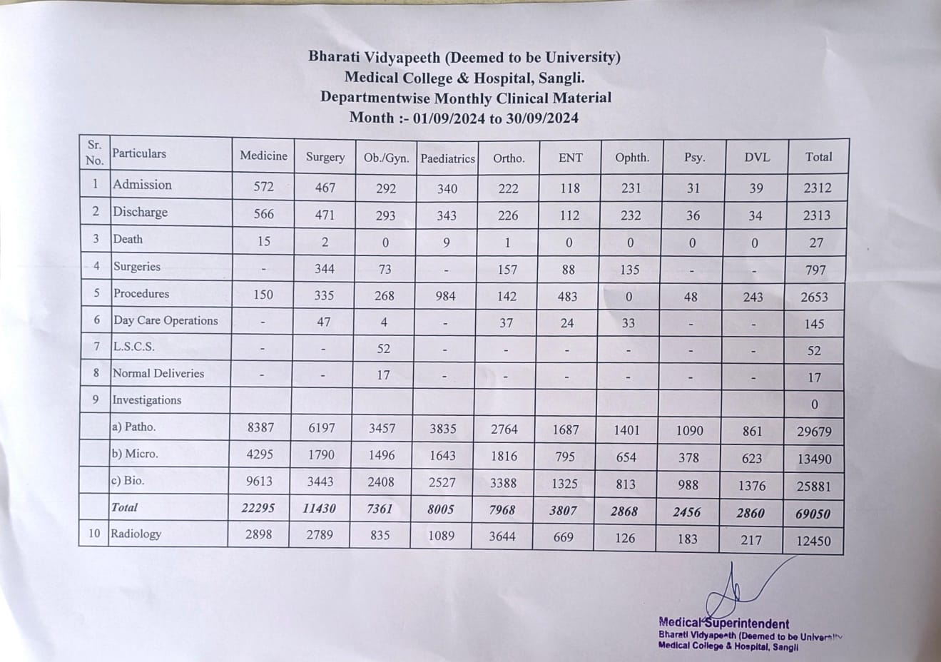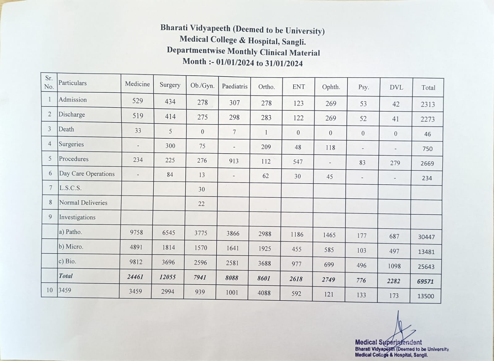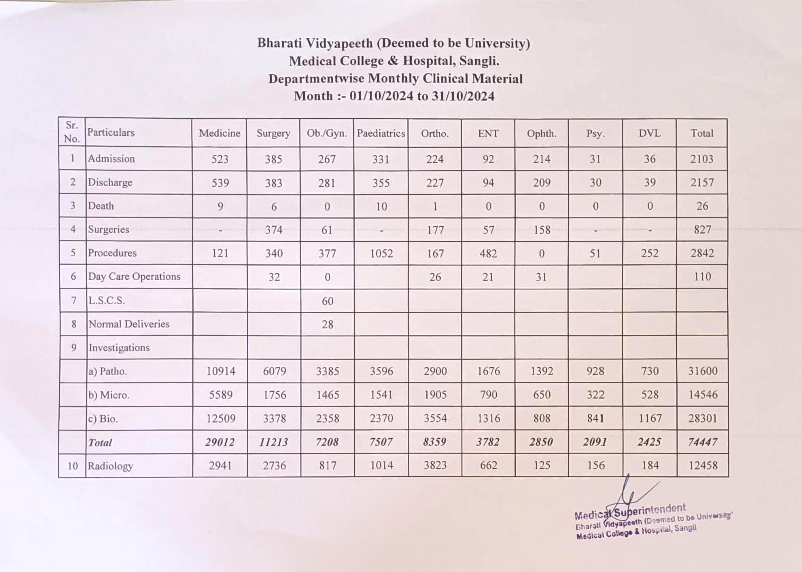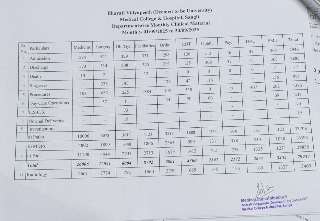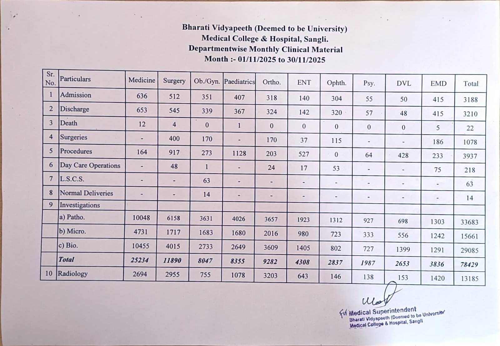 Department-wise Monthly Clinical Material